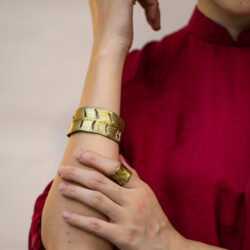 Vòng Tay Đồng Vàng Chạm Lá Chuối